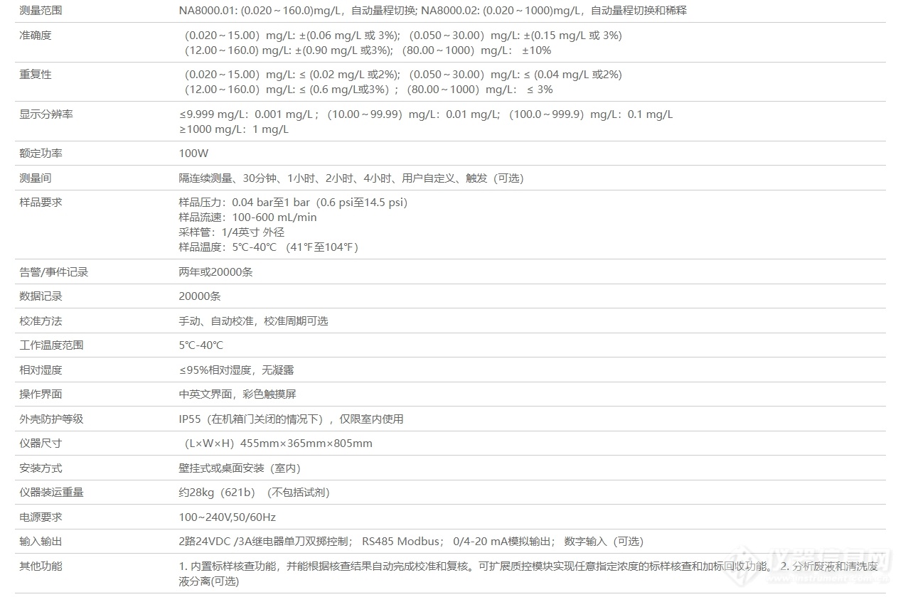 有HACH哈希在线分析仪氨氮测定仪Amtax NA8000 氨氮检测仪的详细技术参数吗?